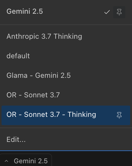- Model selections (o3-mini-high, Claude 3.7 Sonnet, DeepSeek R1, etc.)